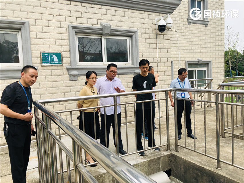 國禎集團及國禎環(huán)保領(lǐng)導(dǎo)謝婭、劉斌等一行在望塘污水廠查看出水
