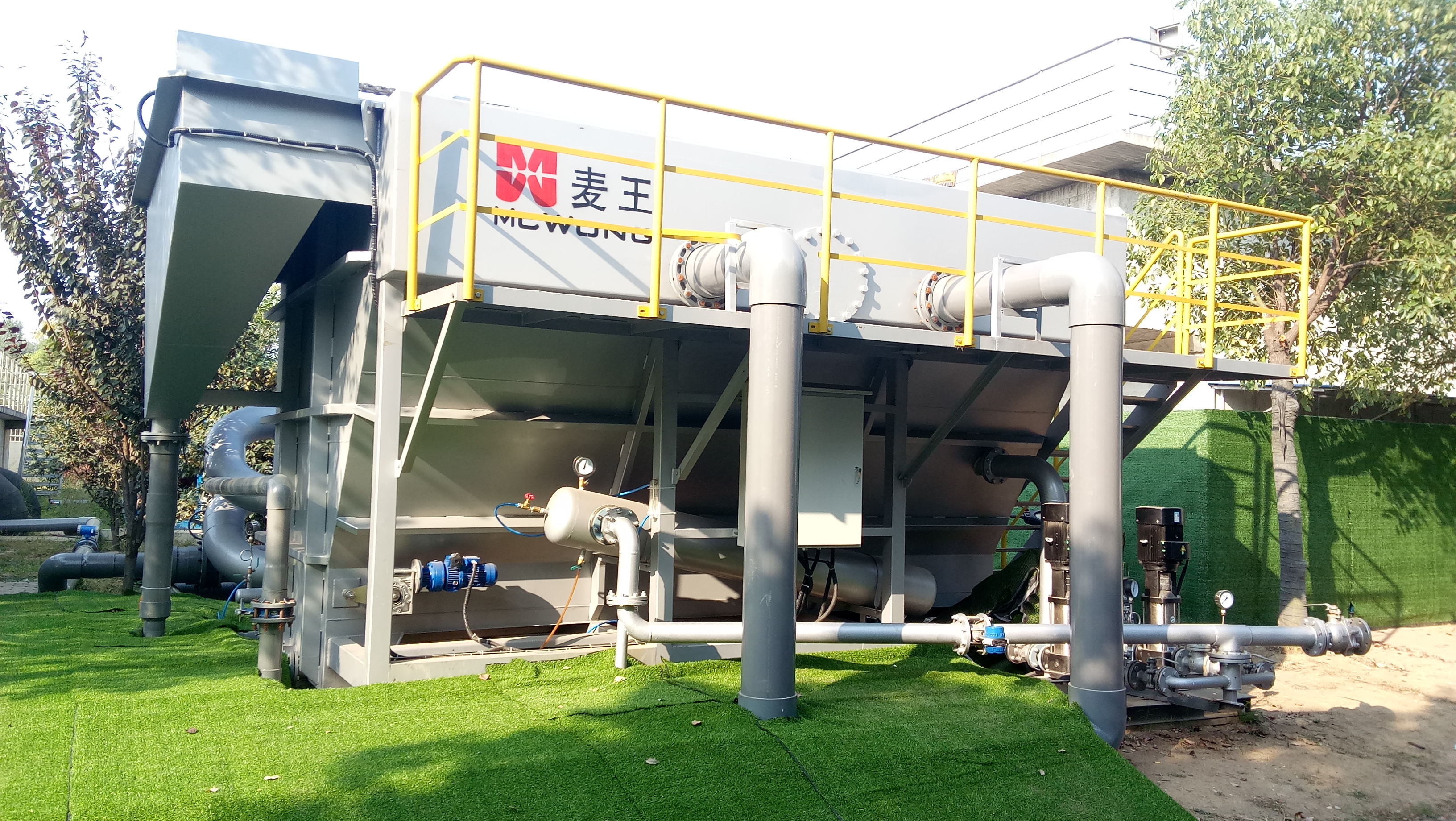 MWDAF(MWDAF,McWong Micro-Nano Dissolved Air Flotation)微納米高效氣浮用于污水處理領(lǐng)域的高效固液或液液分離。相對傳統(tǒng)的氣浮技術(shù),MWDAF微納米高效氣浮由獨特的盤管混合區(qū)、微納米氣泡發(fā)生裝置、高效沉淀區(qū)、智能加藥系統(tǒng)等組成,具有結(jié)構(gòu)合理、運行穩(wěn)定、處理效果好、高效節(jié)能、占地面積小等優(yōu)點。主要應(yīng)用于廢水極限除磷、高效除油除懸浮物、污泥濃縮等領(lǐng)域。