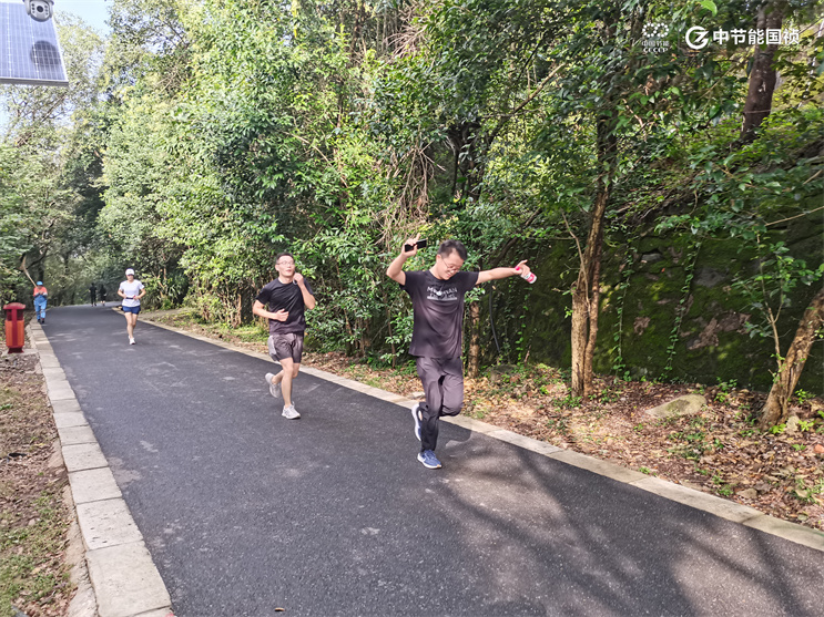 主持人介紹比賽規(guī)則后,公司副總經(jīng)理葉東宣布登山比賽正式開始。
