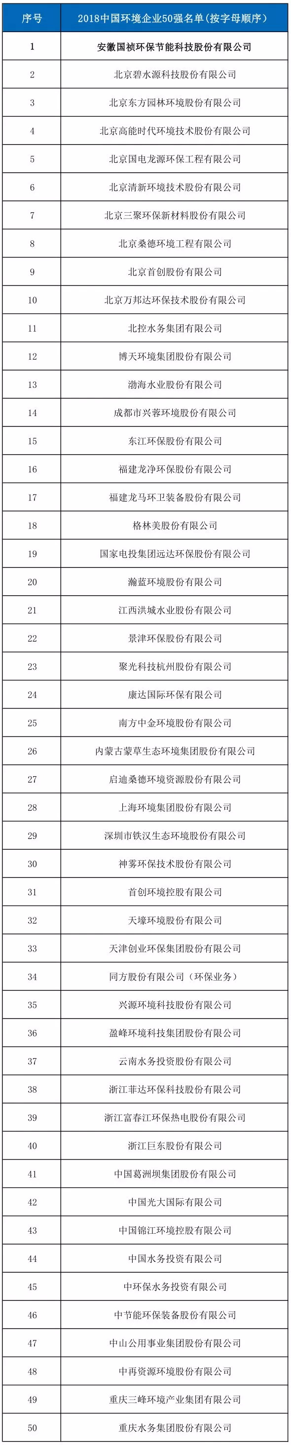 榜上有名——國禎環(huán)保榮獲“中國環(huán)境企業(yè)50強”